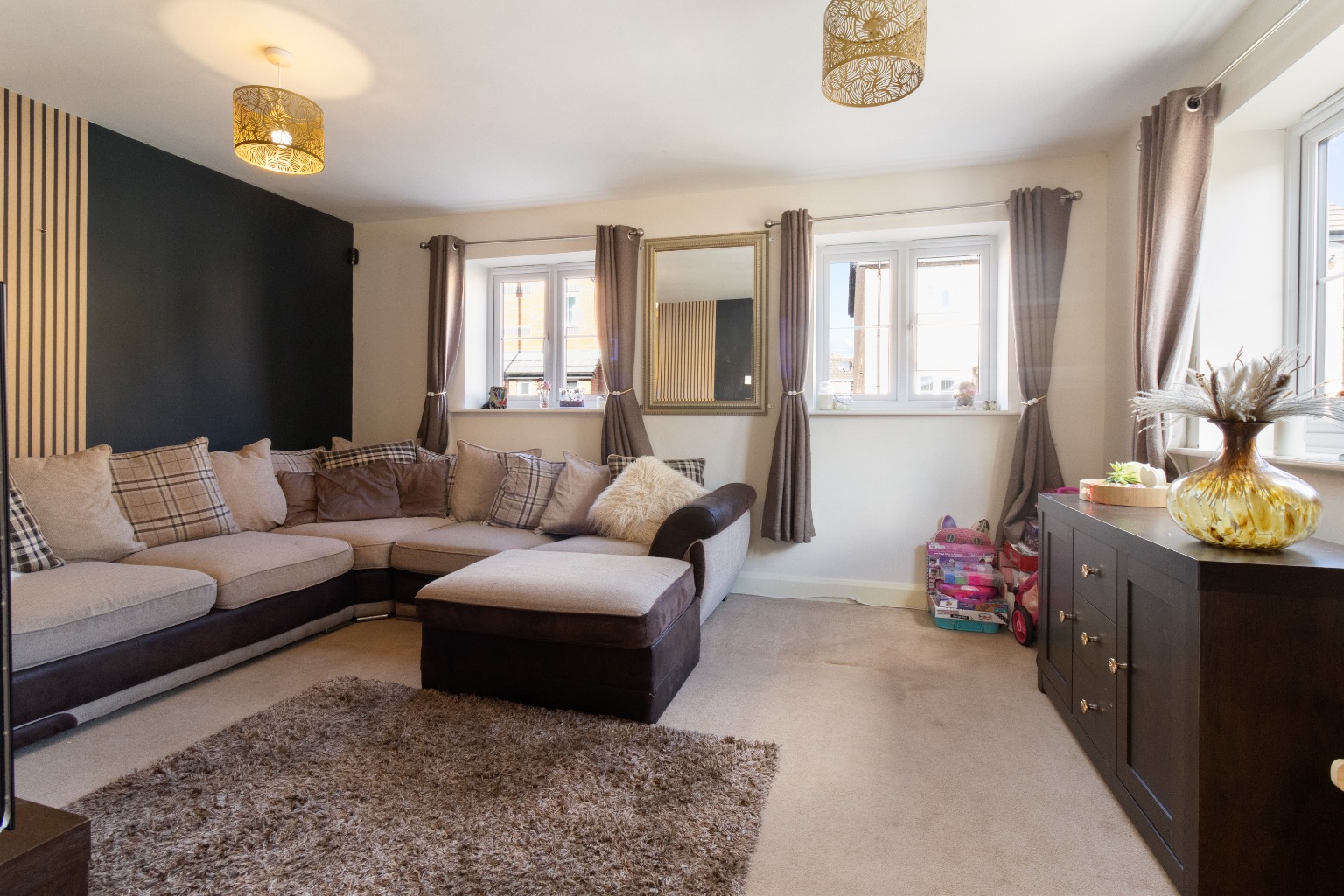 Approaching the property via a footpath to the entrance door leading in to the entrance hall. Stairs leading to first floor with under stairs cupboard, doors off to cloakroom, lounge and kitchen/diner. Spacious and light living room with dual aspect windows. Kitchen/diner fitted with a range of base and eye level units, worktops and tiled splashbacks with sink and drainer, gas hob, extractor over and electric oven under, integrated appliances, double doors lead to the rear to the garden.