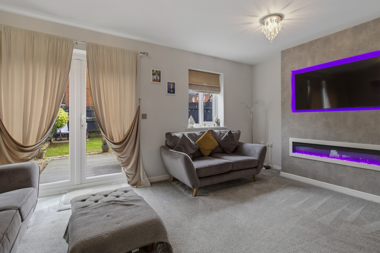The south facing low maintenance garden has large decked seating area, lawn and fencing to all borders, gated side access to the garage and parking. Single garage with metal up and over door, power and light. Allocated parking.